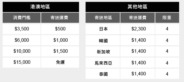 其餘海外運送相關資訊,請查看 “全球配送服務”