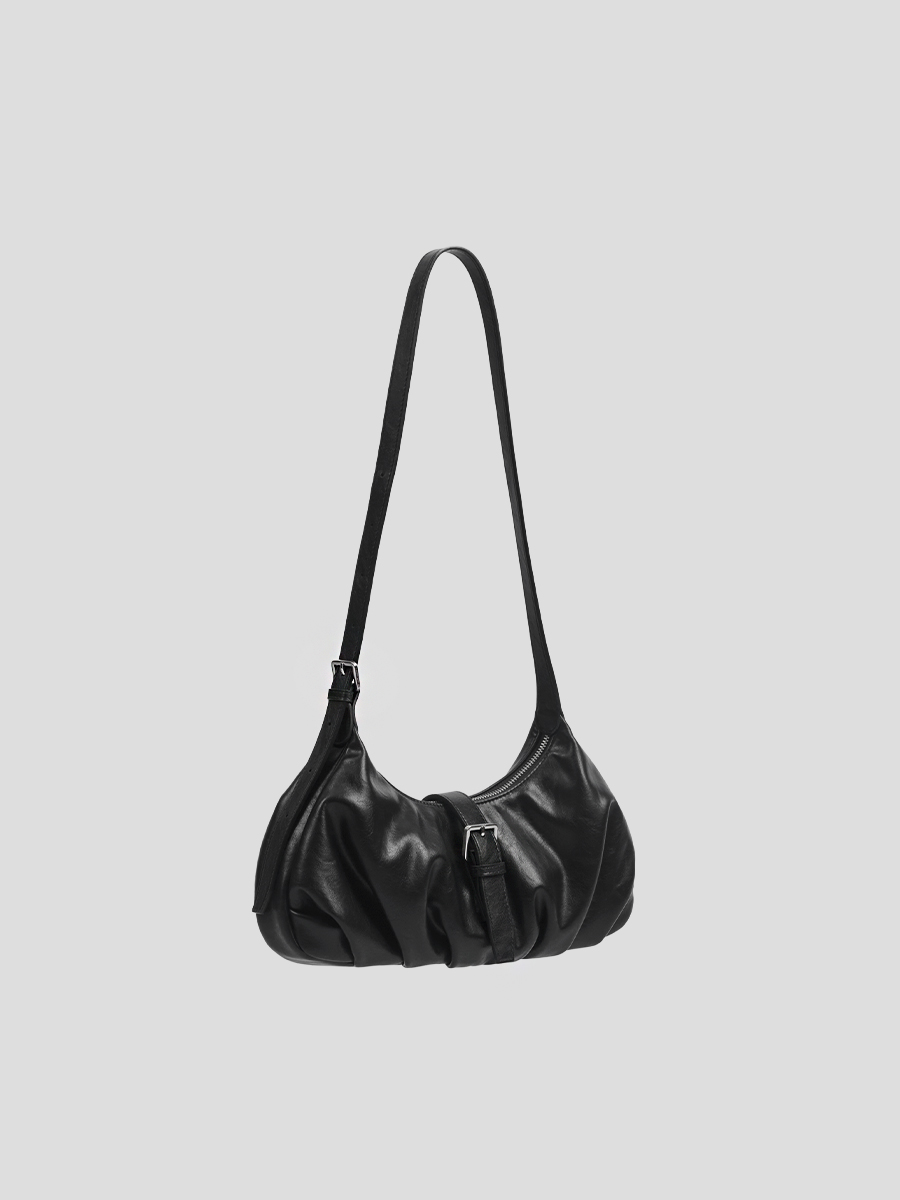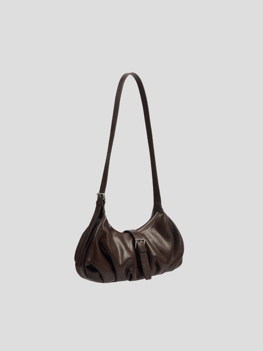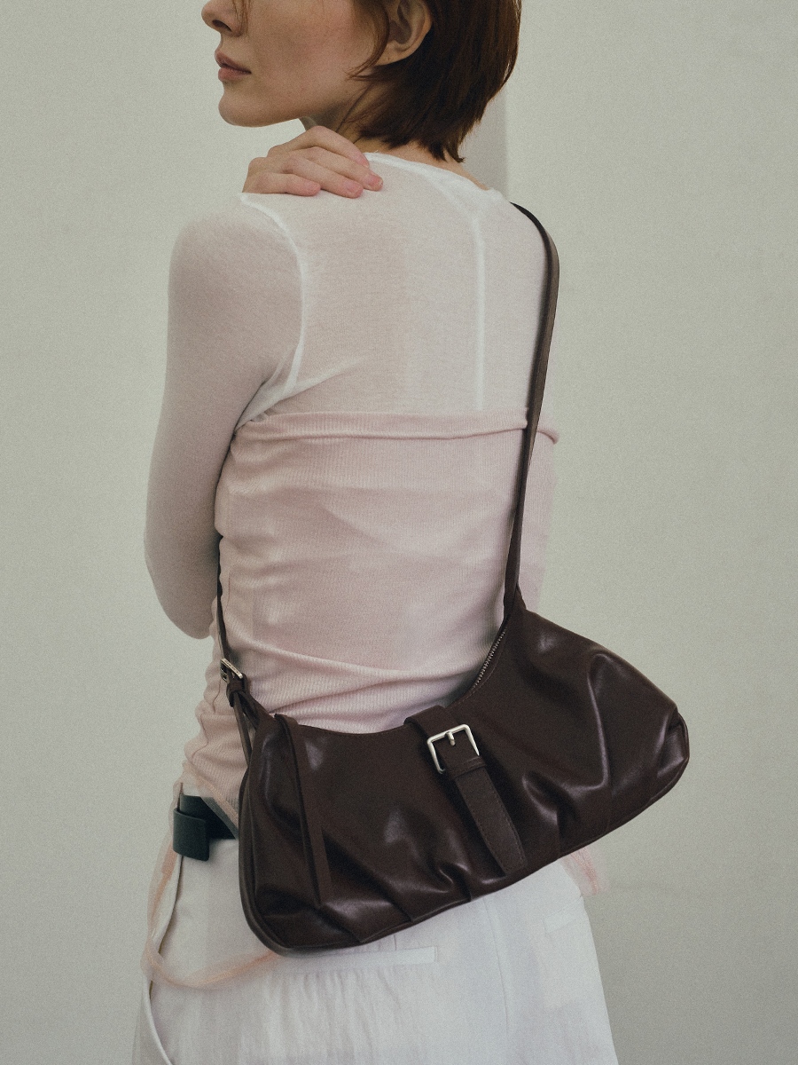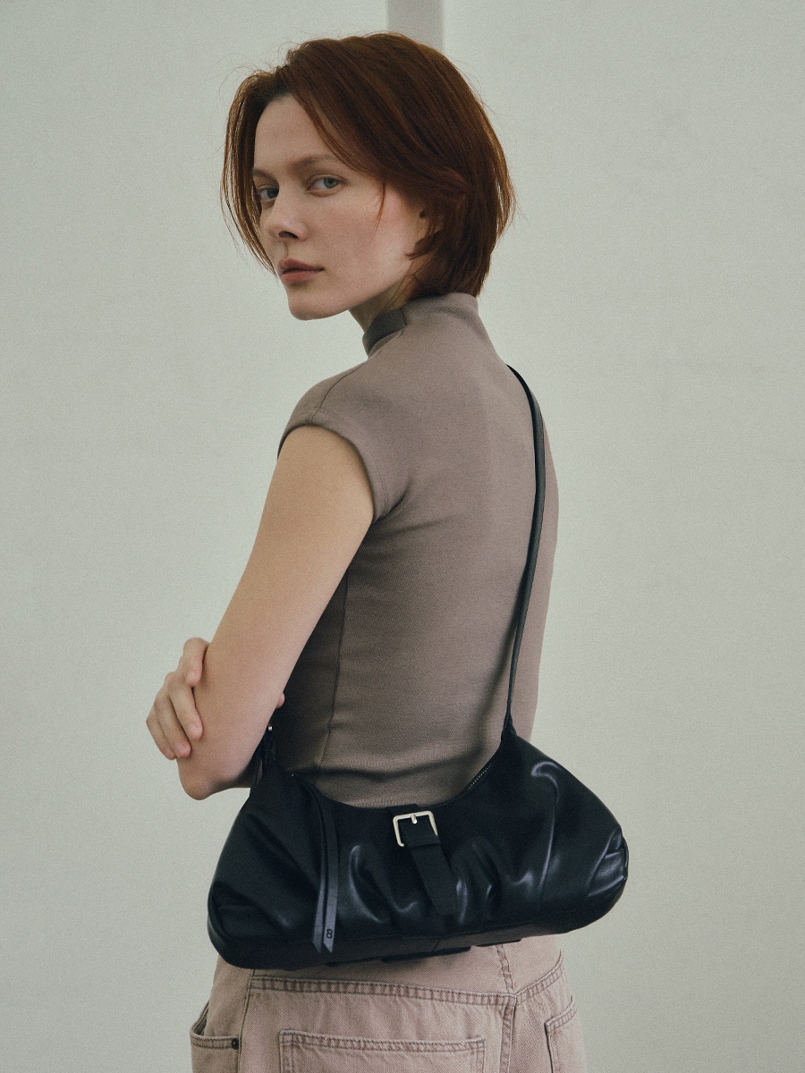 Flora 針扣抓皺肩揹包 以簡約質感為設計核心,包身採用手感柔韌的 PU 皮革,呈現俐落造型的同時,保有柔和線條的細膩感。包身下緣的自然褶皺設計,增添輕盈的輪廓感,與中間五金針扣形成對比,展現精緻質感。可調節揹帶搭配品牌訂製掃叻色針扣,靈活應對不同穿搭需求。內裏設有貼式口袋與拉鍊暗袋,可有序收納手機、錢包等隨身物件,滿足日常使用需求。整體輪廓簡約而不單調,細節講究而實用,兼具俐落外型與日常功能,是兼顧質感與實用性的肩揹包款。