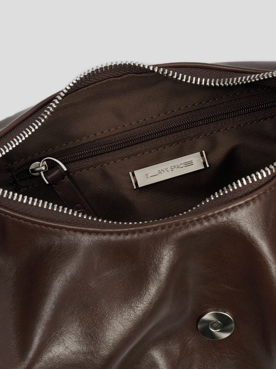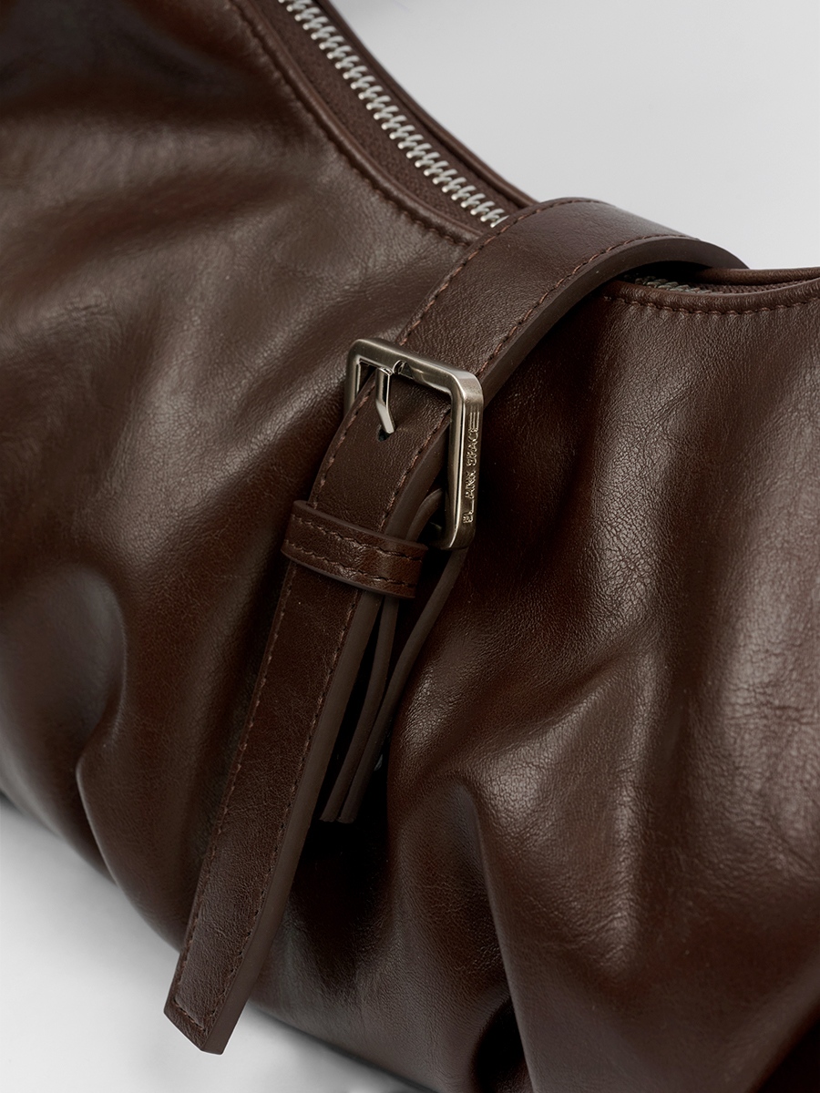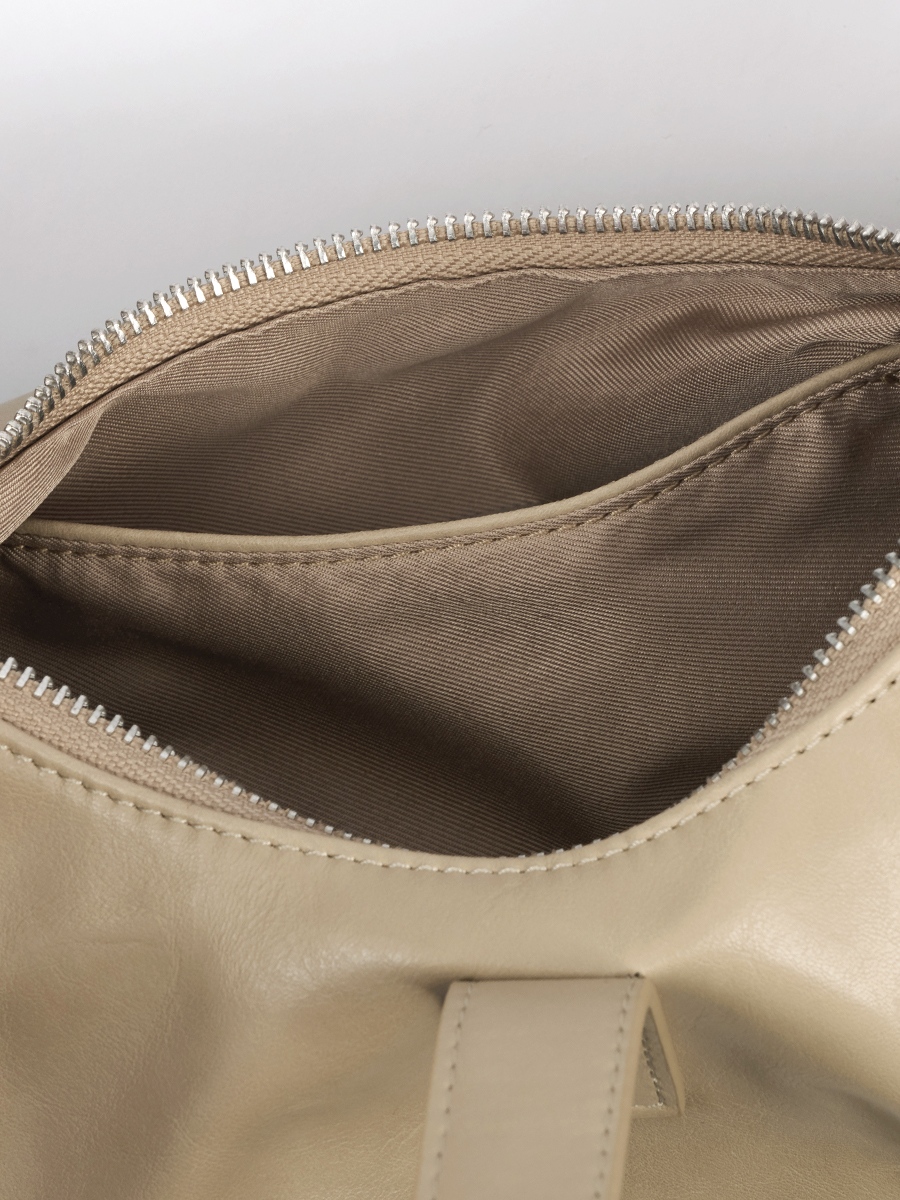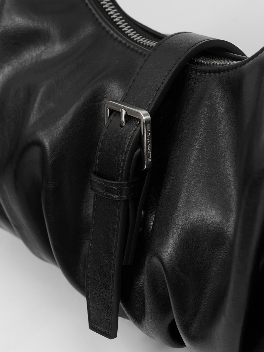 Flora 針扣抓皺肩揹包 以簡約質感為設計核心,包身採用手感柔韌的 PU 皮革,呈現俐落造型的同時,保有柔和線條的細膩感。包身下緣的自然褶皺設計,增添輕盈的輪廓感,與中間五金針扣形成對比,展現精緻質感。可調節揹帶搭配品牌訂製掃叻色針扣,靈活應對不同穿搭需求。內裏設有貼式口袋與拉鍊暗袋,可有序收納手機、錢包等隨身物件,滿足日常使用需求。整體輪廓簡約而不單調,細節講究而實用,兼具俐落外型與日常功能,是兼顧質感與實用性的肩揹包款。