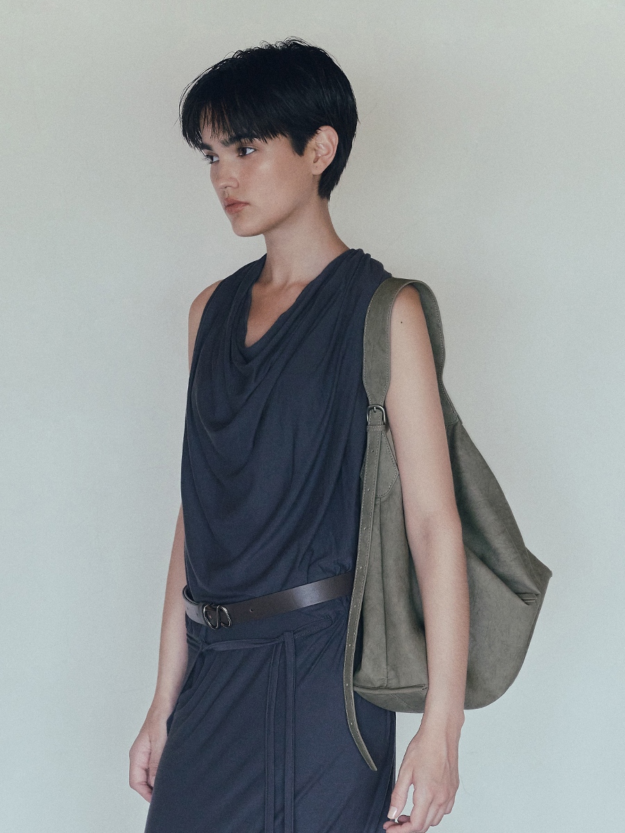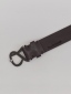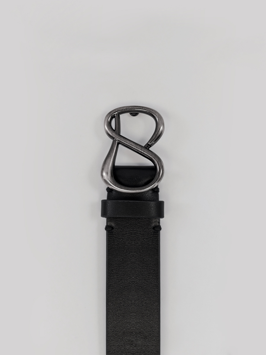 皮帶頭接合處細節俐落,上下兩側皆以對稱手縫加固,不僅巧妙修飾銜接處,也更精準地固定金屬環與皮帶本體,使結構更為穩固。