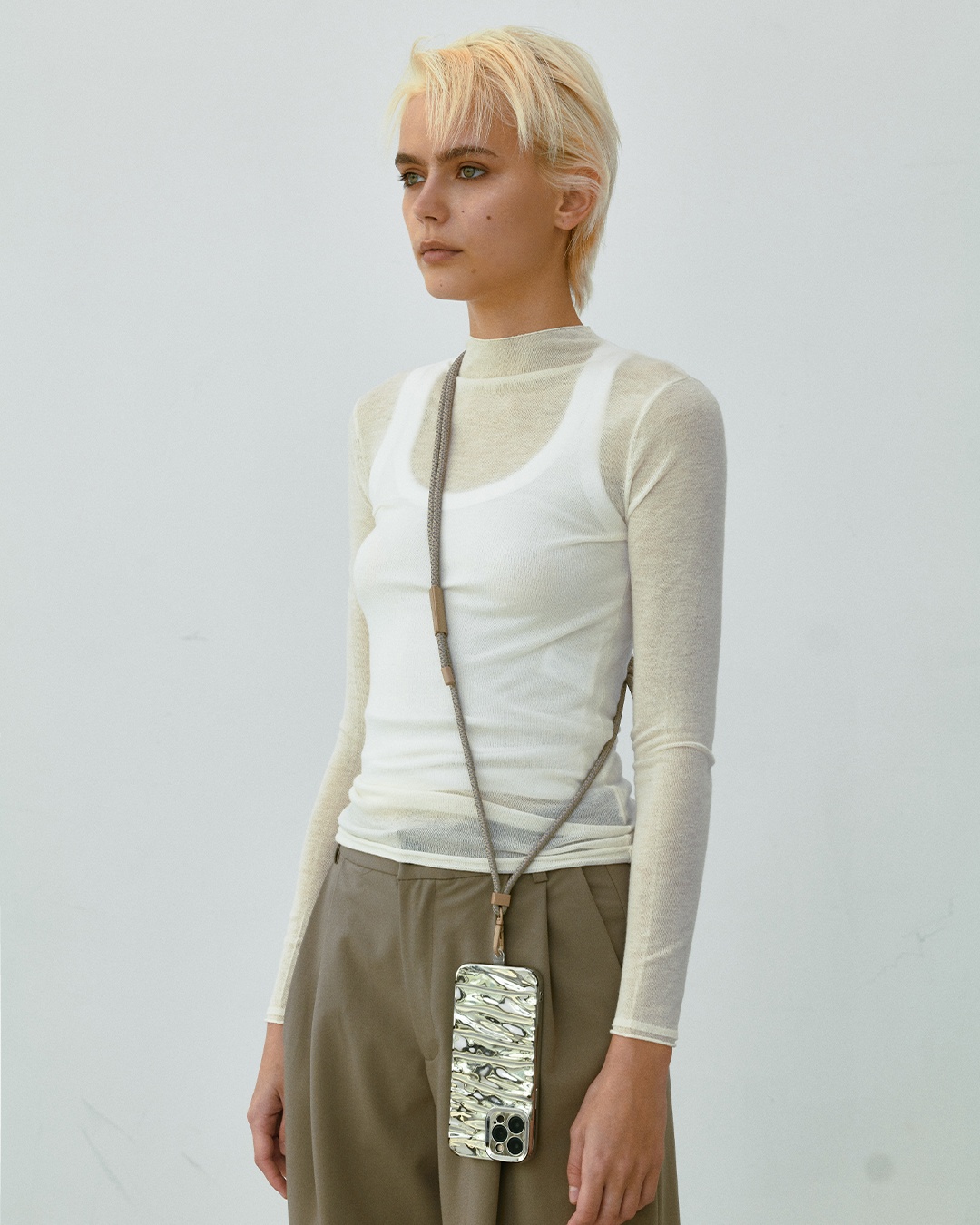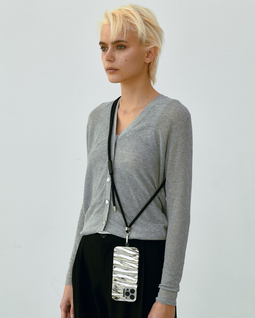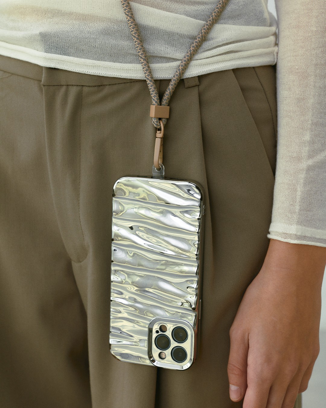 此款可調節式手機掛繩,以簡潔純色為設計的核心,掛繩線條帶出的俐落感使都會時髦感提升。材質以滌綸製成,充滿韌性的材質特性,可時時刻刻應對各式場合的狀況。