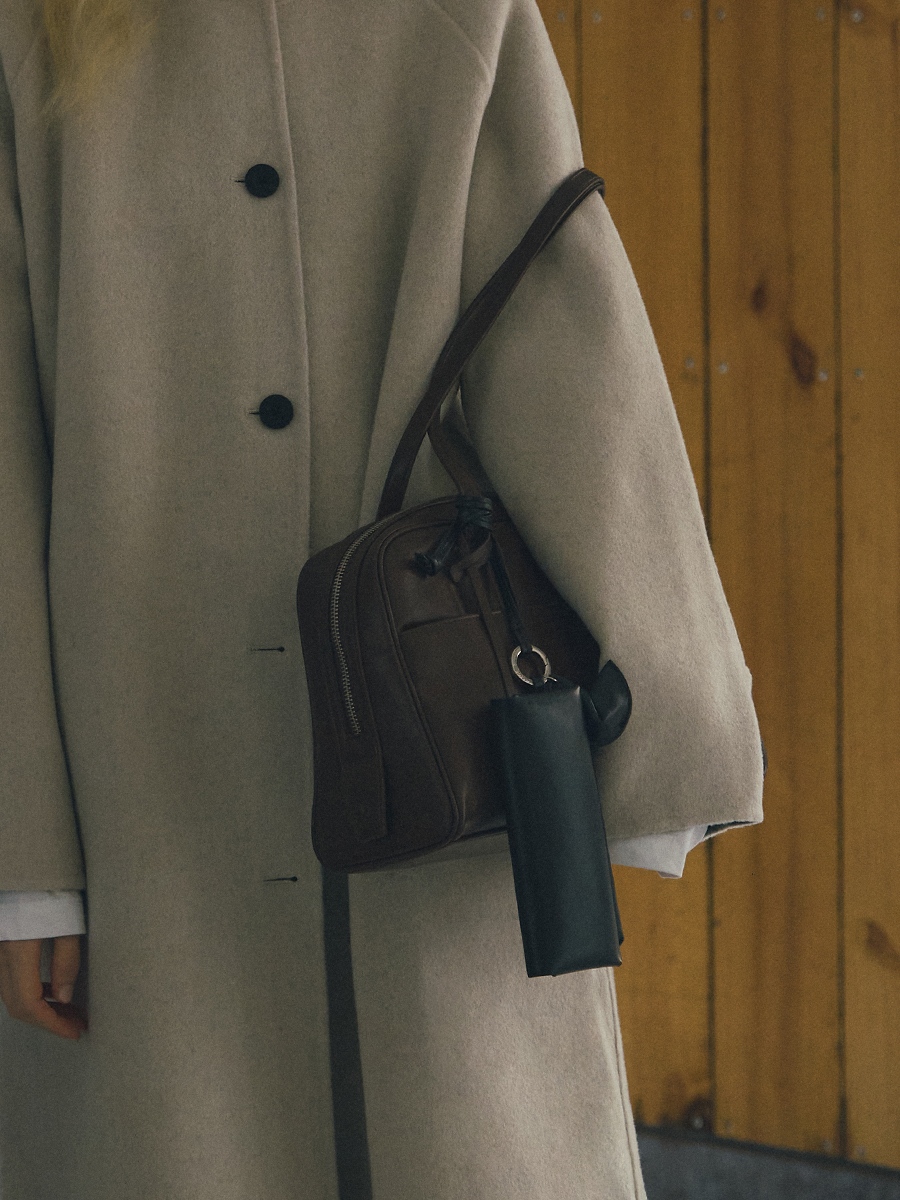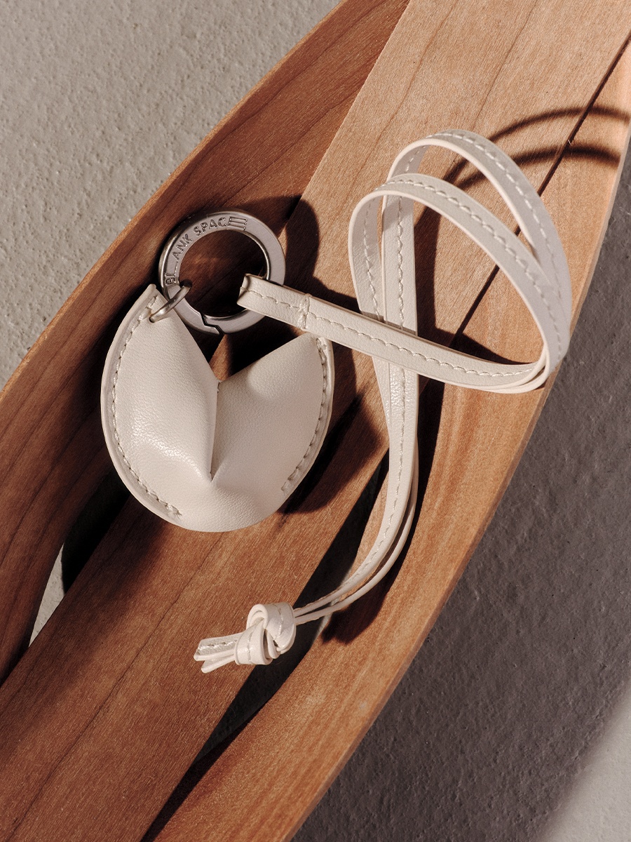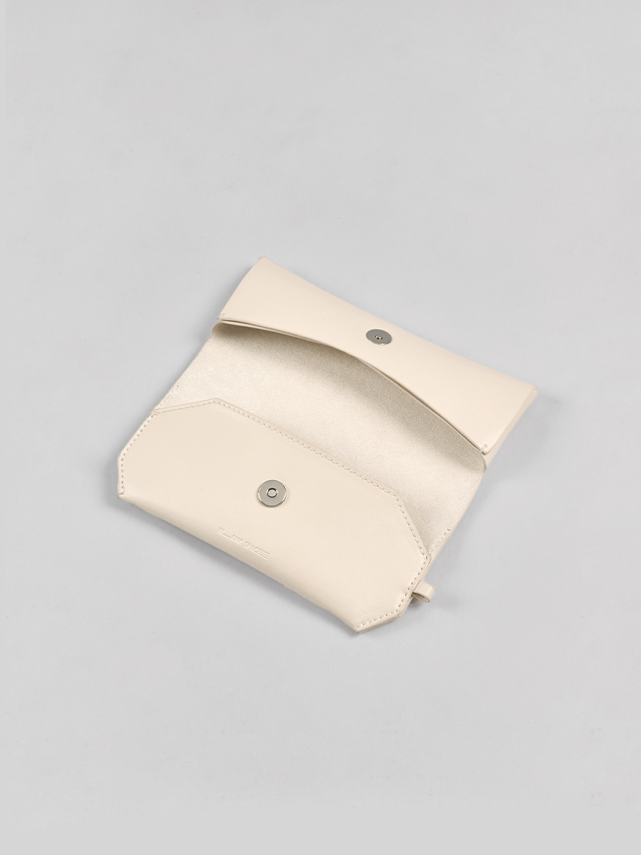 Etta墨鏡收納包 以簡約俐落的長方形結構為基礎,透過自然摺線塑造柔和立體感。包身選用觸感細膩的霧面超纖皮革,展現輕盈柔韌的質感。磁扣開闔設計提升使用便利性,內層空間可穩固收納墨鏡或小物;背面夾層則可有序收納卡片與鈔票,體積輕巧卻滿足日常所需,讓攜帶更靈活。正面以品牌 LOGO 低調壓印,延續整體簡約俐落的風格。可拆式掛繩搭配品牌訂製掃叻色五金環,結合「幸運餅乾」造型掛件,內藏柔軟眼鏡擦拭布,於細節間融入巧思與實用性。皮繩亦可纏繞於包身揹帶,靈活轉化為造型掛飾,為日常搭配增添一抹變化與趣味。