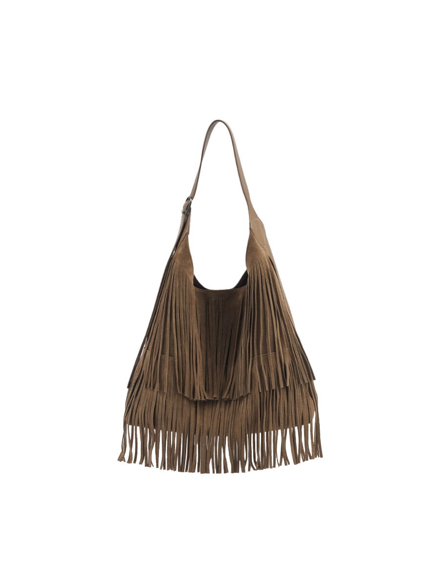正面選用磨砂麂皮,搭配大面積流蘇細節,隨步伐搖曳,增添層次與律動感。