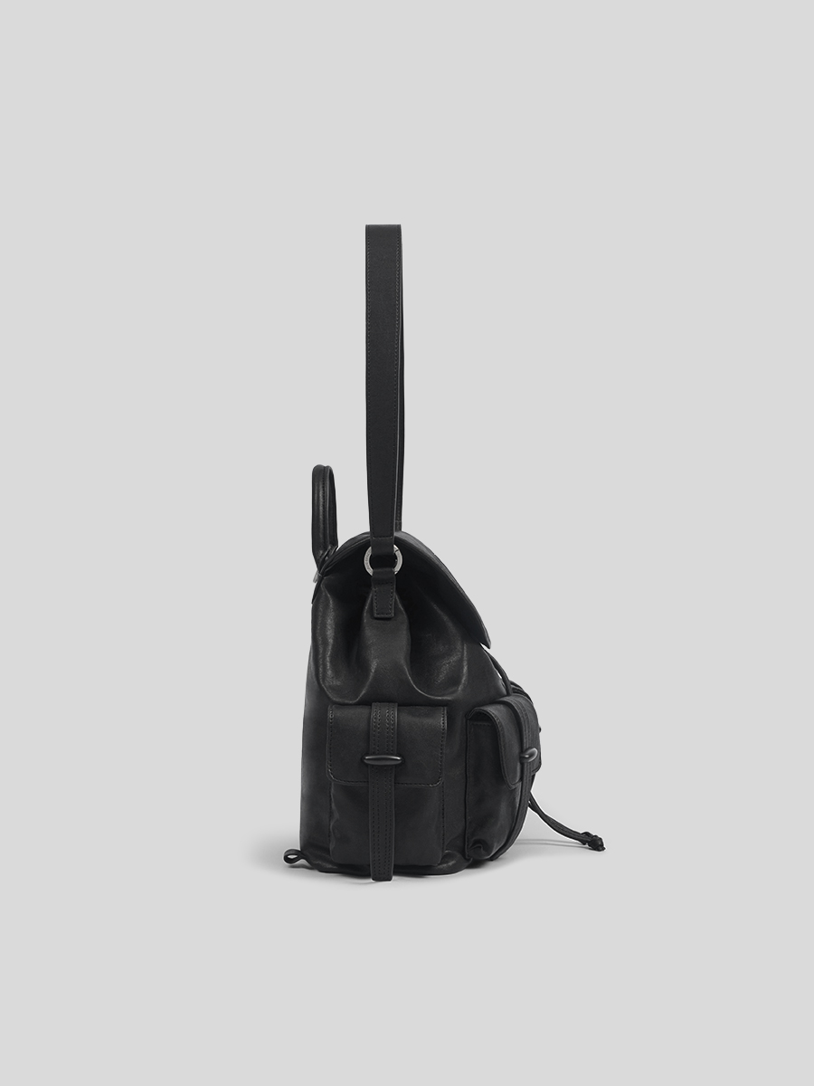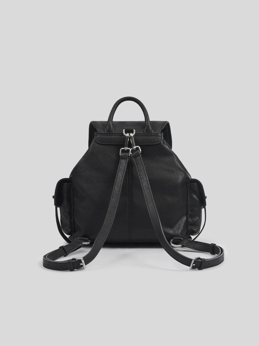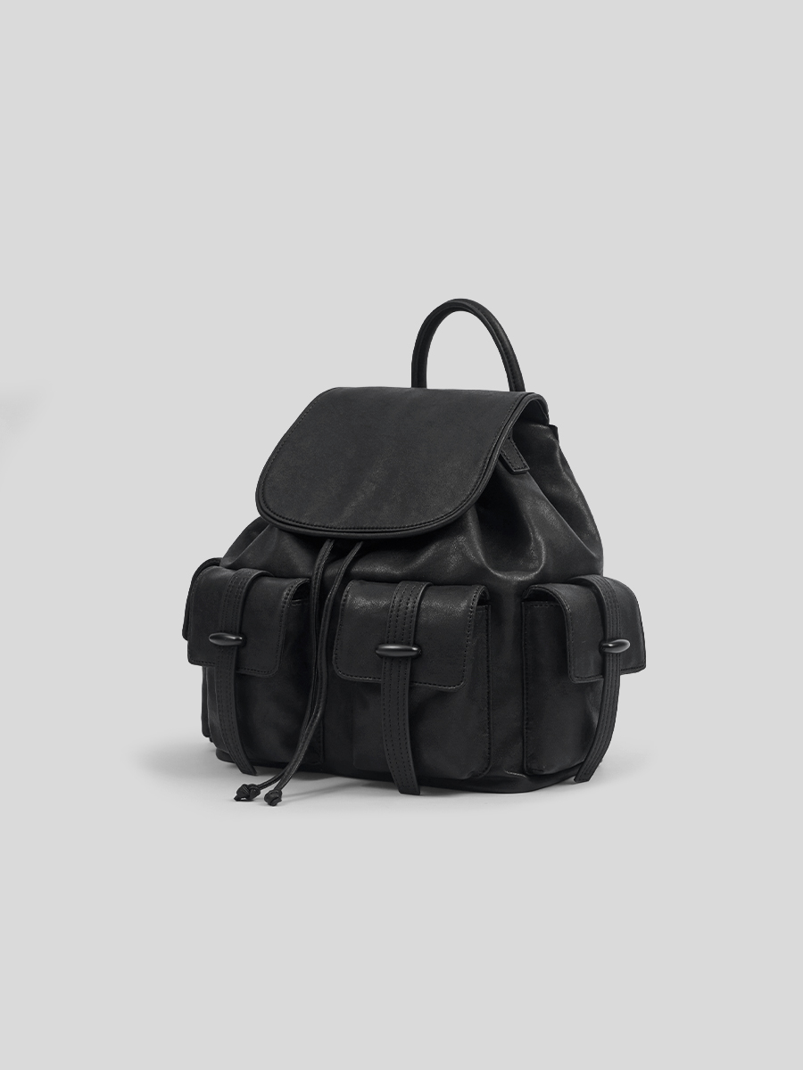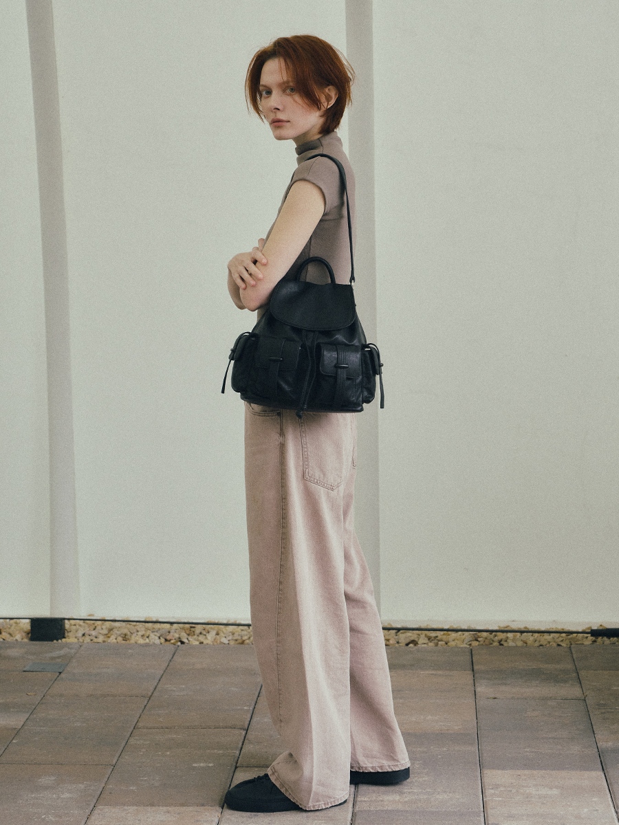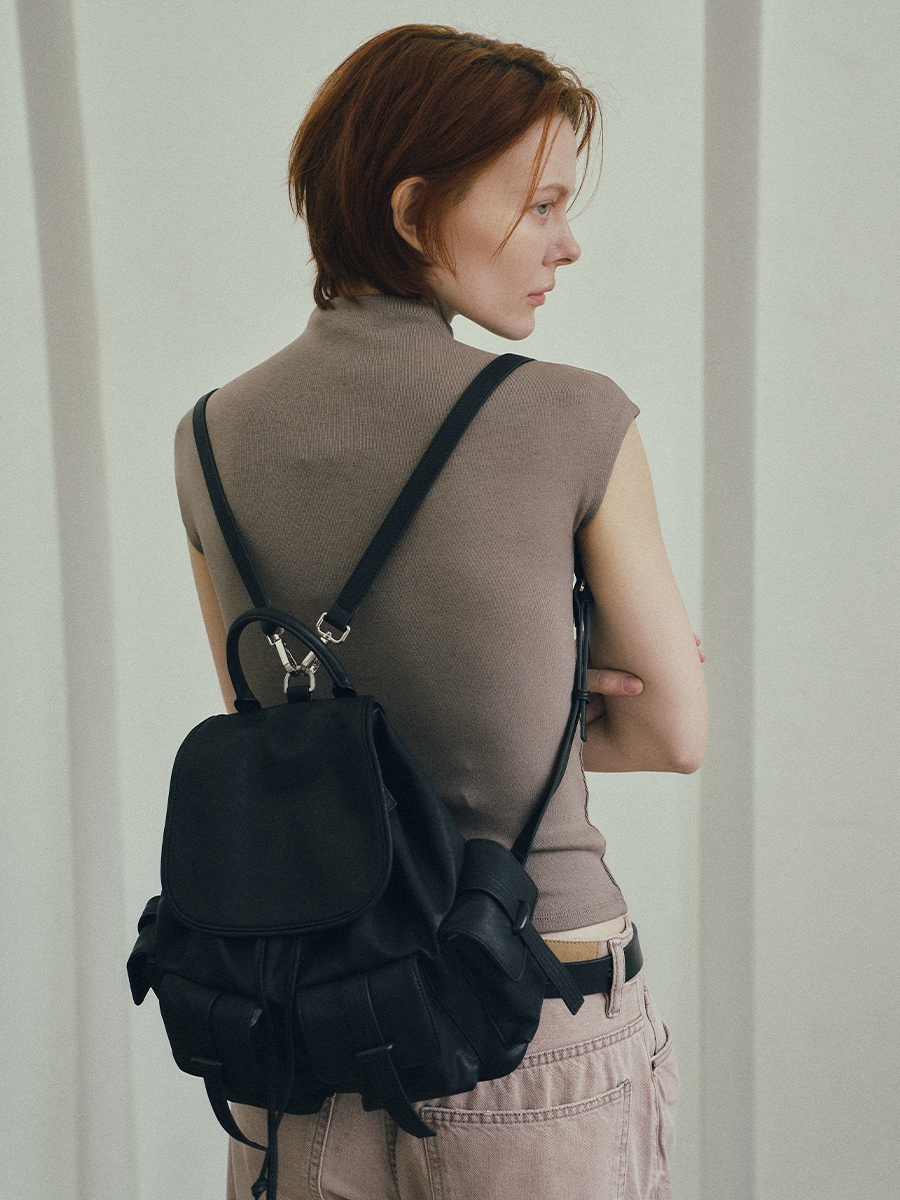 Bette 兩用口袋後背包 以實用性結合俐落輪廓為設計核心,採用略帶蓬潤感的包身比例,在結構感與隨性氛圍之間取得平衡,呈現耐看且適合日常使用的後背包樣貌。包身上方採用翻蓋式磁扣開闔設計,外觀簡潔俐落;內裡另搭配抽繩束口結構,在提升袋口安全性的同時,也讓線條保有自然收束的垂墜感。多個口袋夾層可有序收納日常隨身物件,使包款在實用之餘仍維持整體的一致與平衡。除經典的後背揹法外,另附一條肩揹帶,可依穿搭與場合轉換使用,滿足日常需求。不論是後背或肩揹,皆能自然貼合身形比例,在日常移動之中展現從容、實用且具質感的生活風格。