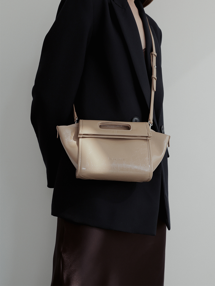 Freda翻摺兩用紙袋包 設計靈感源自紙袋,透過摺疊設計與隱藏磁吸,呈現多變的廓型。