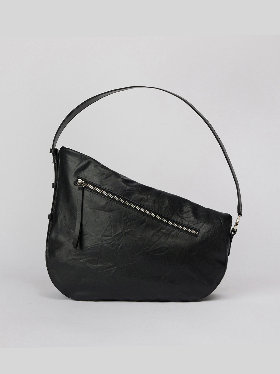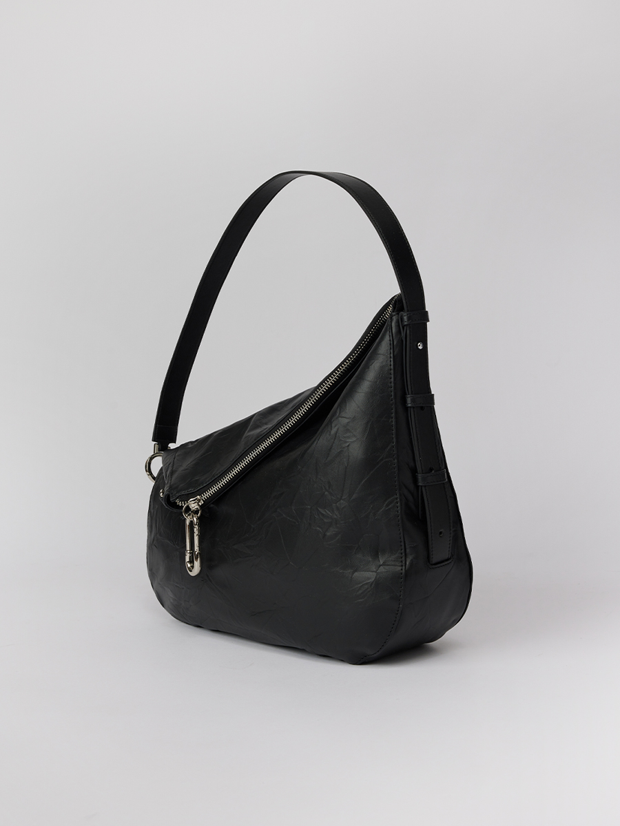 展開時,線條俐落簡約,提供寬敞的收納空間;反摺時,迴紋針造型拉頭點綴細節,與自然皺褶紋理相互映襯,營造隨性而富有造型感的視覺效果。