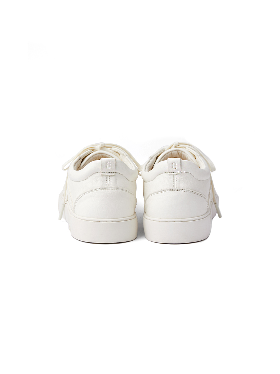 鞋面以「對比色爬線」勾勒拼接線條,如同在極簡畫面中落筆,讓結構細節成為視覺焦點。材質選用天然牛皮製成,肌理自然細緻,每雙都保留真皮獨有的紋理與溫潤質感。