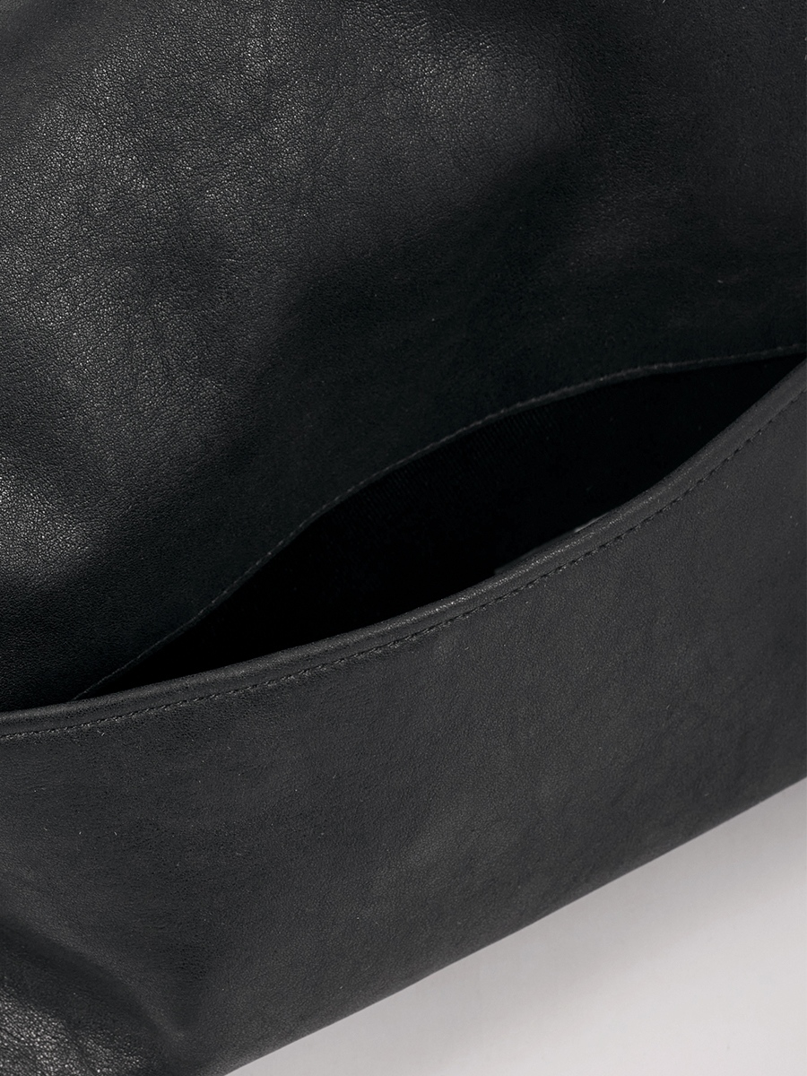 Aria 兩用翻折托特包 以法式可麗餅為靈感。包身選用手感柔軟的二層牛皮,隨收納容量與使用方式自然轉換造型。折疊時呈現俐落的長方形手提線條,展開後則展露垂墜立體的姿態,如同一張輕盈的可麗餅——靈動,隨意折疊就能展現不同風貌。