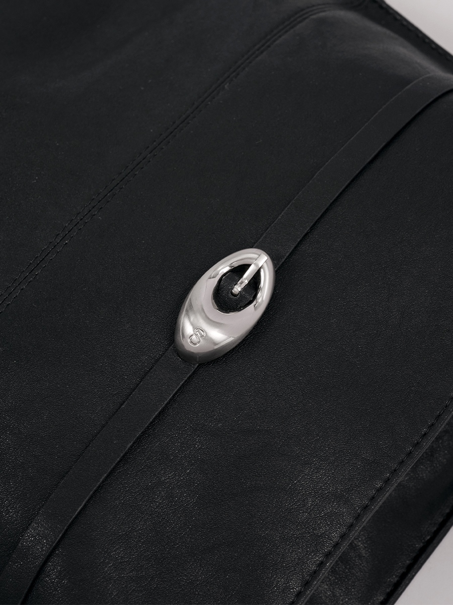 中央腰帶式結構搭配品牌訂製的掃叻色針扣,低調金屬光澤與乾淨線條互相呼應,為極簡外觀增添細節亮點。揹帶採用奶嘴丁調節設計,可依需求自由調整長度,靈活適應不同身形比例與穿搭情境。