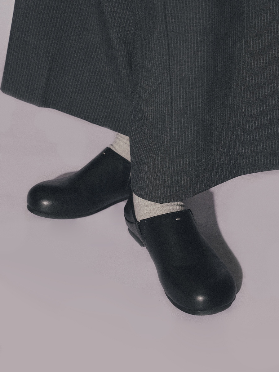 兩穿式設計讓穿著更具彈性:一般穿法率性俐落,踩腳穿法散發隨性慵懶氛圍。