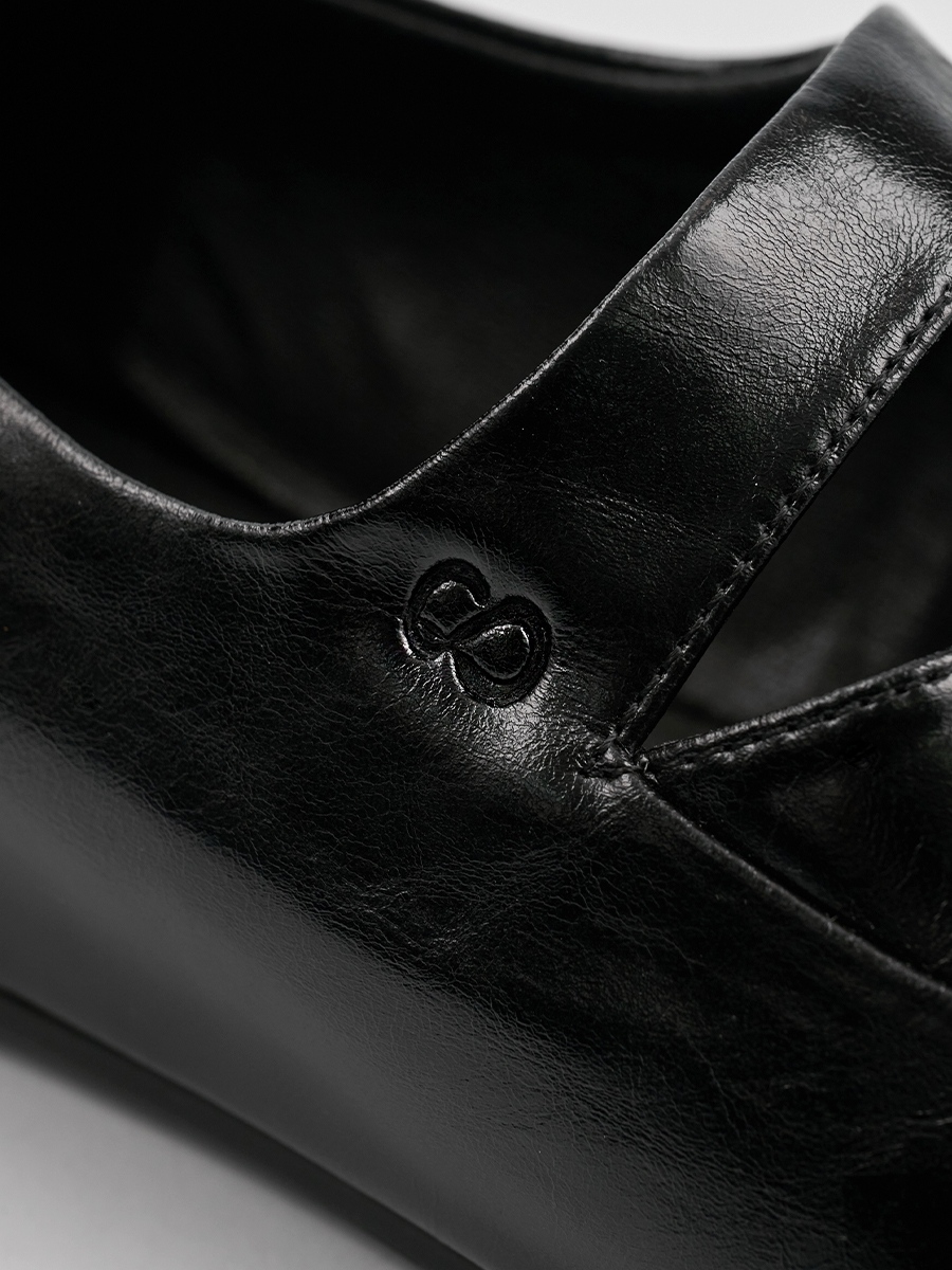 鞋型以微翹尖頭比例勾勒拉長腿部線條,保有尖頭鞋的俐落感的同時放寬鞋楦減輕對腳尖的負擔。