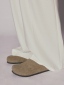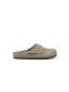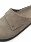 鞋面設計俐落的翻領剪裁,從鞋口延伸到鞋面,有別於以往簡單樣式的勃肯鞋或穆勒鞋,為整體輪廓注入如同大衣般的造型感;鞋側領片上並低調壓印品牌 LOGO,提升細節識別度。