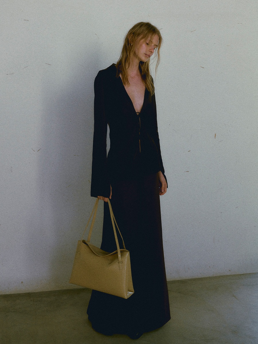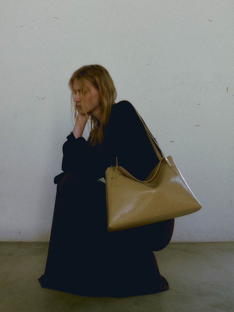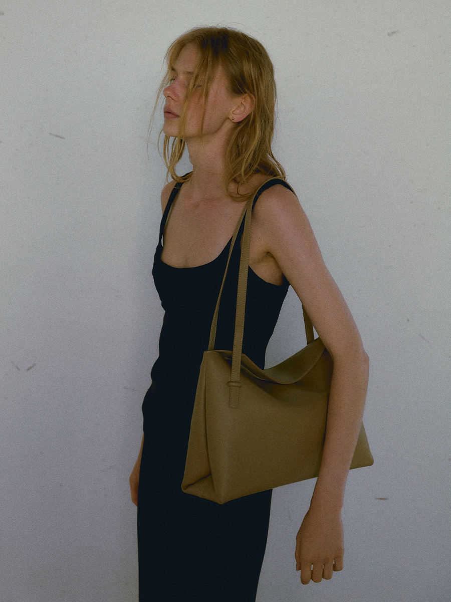 此款 Flip 真皮翻蓋軟方包 Large 採用牛皮製作,廓形以極簡為基底概念,兩側啞面圓潤,將局部收摺立體化,整體設計低調出眾而不失層次。