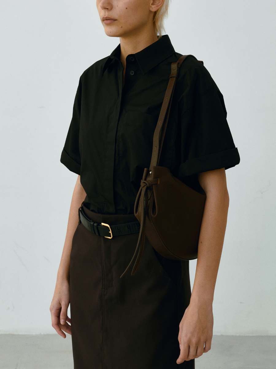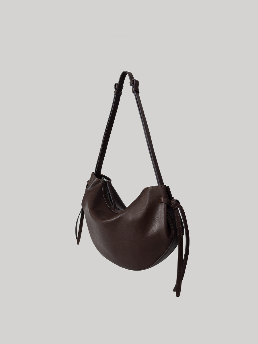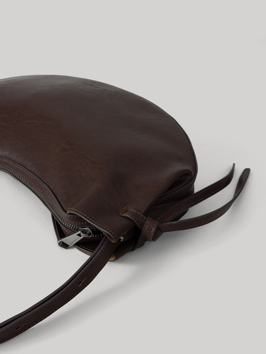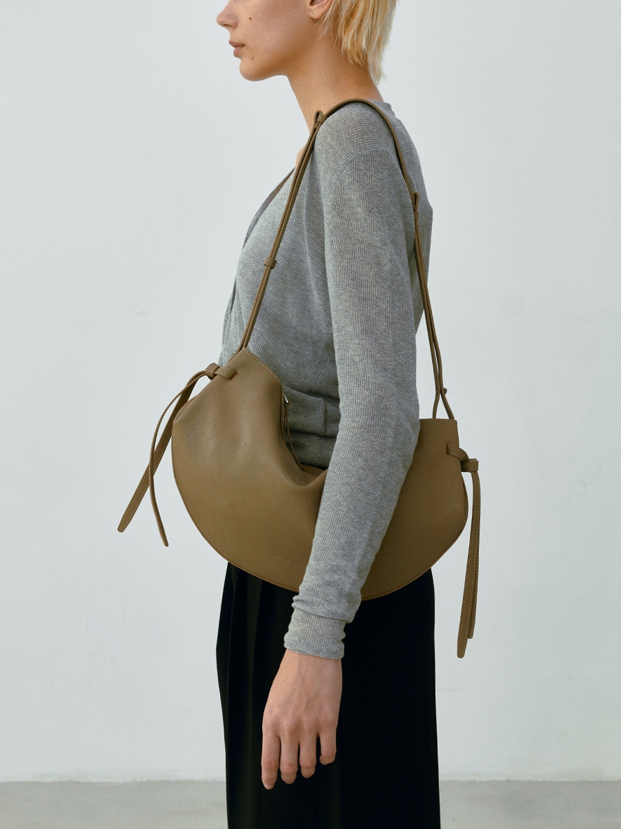 此款 Dudo真皮綁結彎月包 選用肌理皮面為整體增添了一份自然純樸氣息,包款展示了層疊藝術,以簡約流暢的包身線條,搭配兩側穿插袢帶使整體形成貫穿的設計細節,在簡約流暢的同時增添層疊空間感,份量剛好的弧形使裝帶物品時能有更佳的自然下墜弧形。