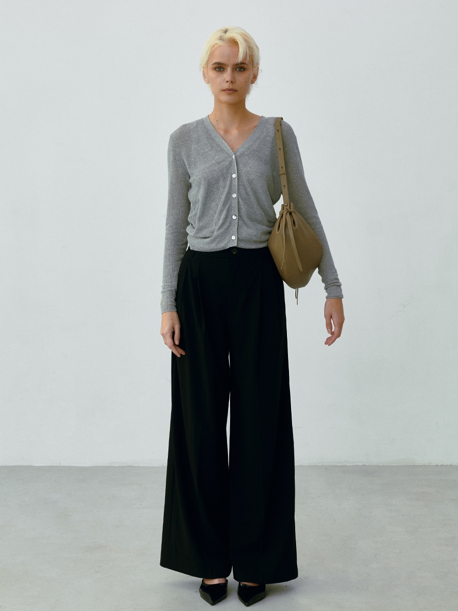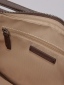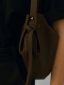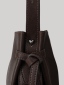 包身側邊設有袢帶造型,使整體更加有層次,皮革使用真皮牛剖層製成,手感柔韌且舒適。包袋開口處設有俐落斜切角面拉鍊牌,並加長皮繩使開合上更加便利。