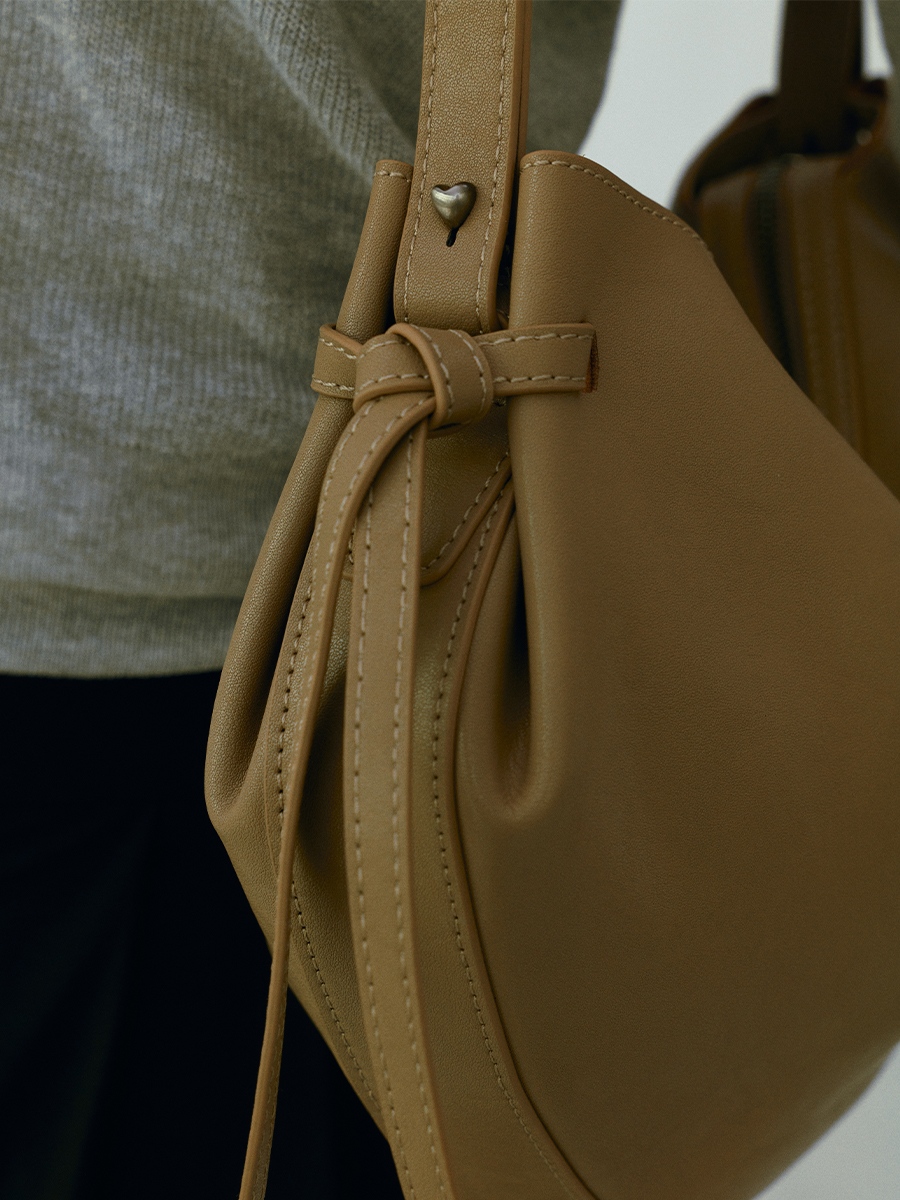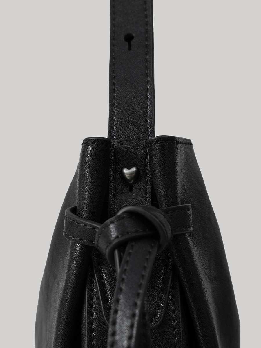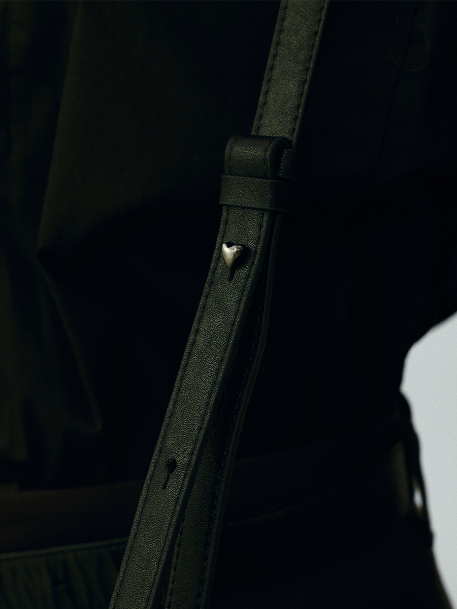 肩帶兩側飾釘調節,以質感拉絲電鍍製成,形體以俐落的愛心比例嘴丁設計,內裡設有寬敞內部空間,以大廓形設計提供不同揹法因應各式場合之需求。