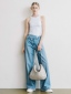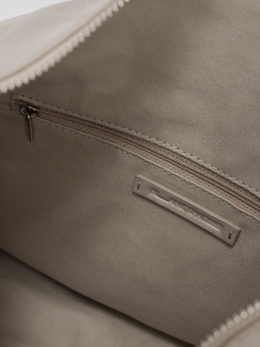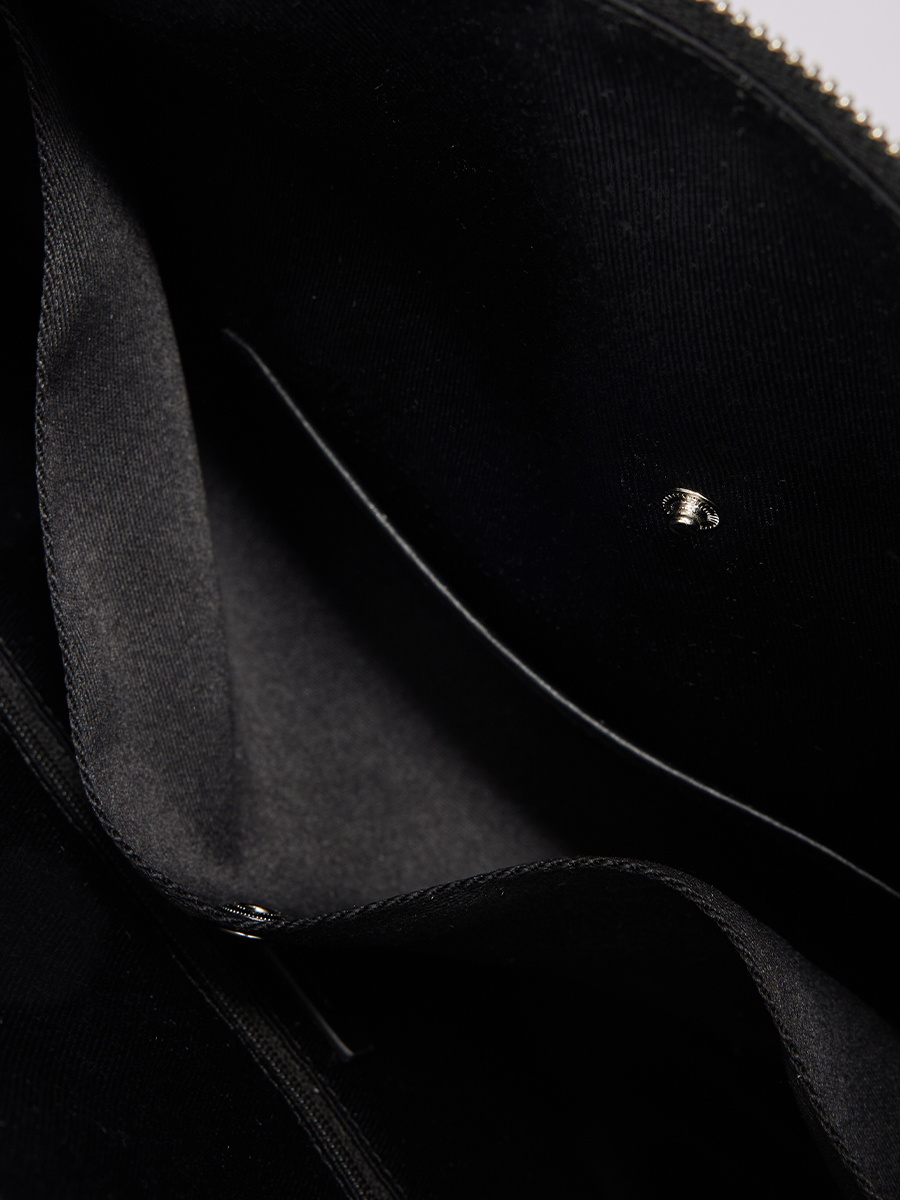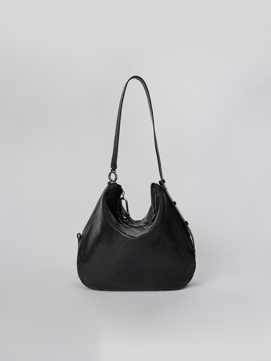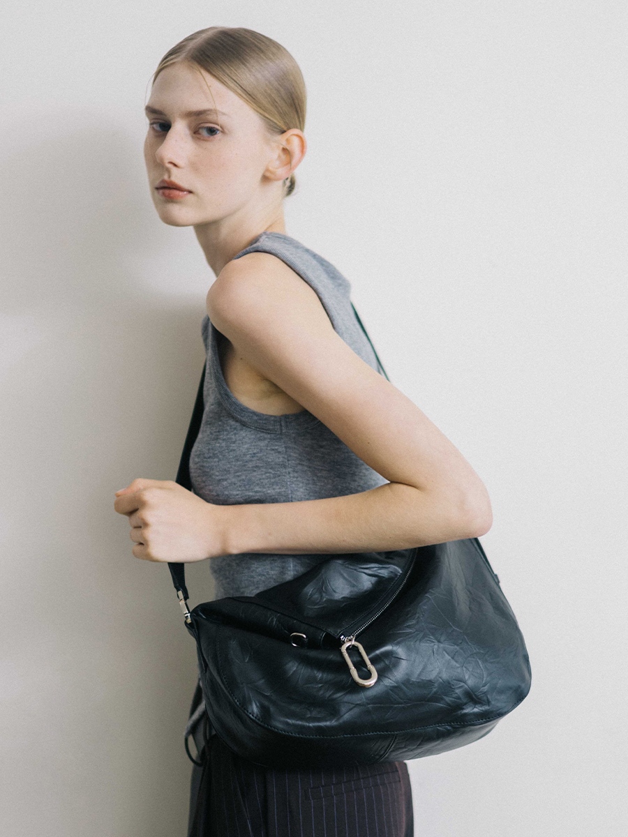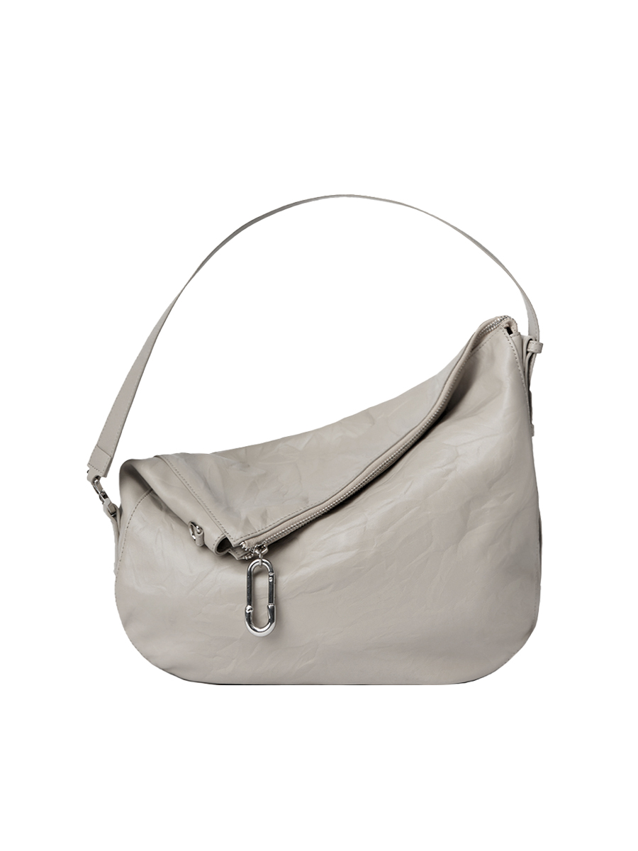展開時,線條俐落簡約,提供寬敞的收納空間;反摺時,迴紋針造型拉頭點綴細節,與自然皺褶紋理相互映襯,營造隨性而富有造型感的視覺效果。