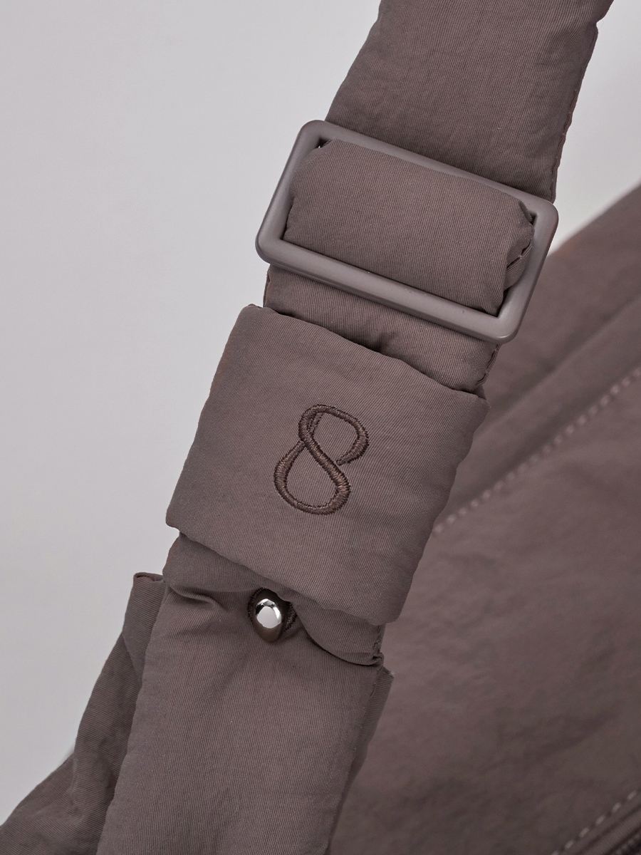 背帶調節處繡有品牌標誌,內層充棉,整體肩背更貼合舒適,減壓同時維持造型穩定;可調節長度設計,無論斜背或側背皆合宜,舉手投足間盡顯俐落從容。底部特別設置隱藏式拉鍊擴充結構,可視需求彈性調整容量;內部配置多個分類夾層與隱藏式收納外袋,輕鬆收納手機、錢包等日常物件,兼顧井然有序與靈活運用。