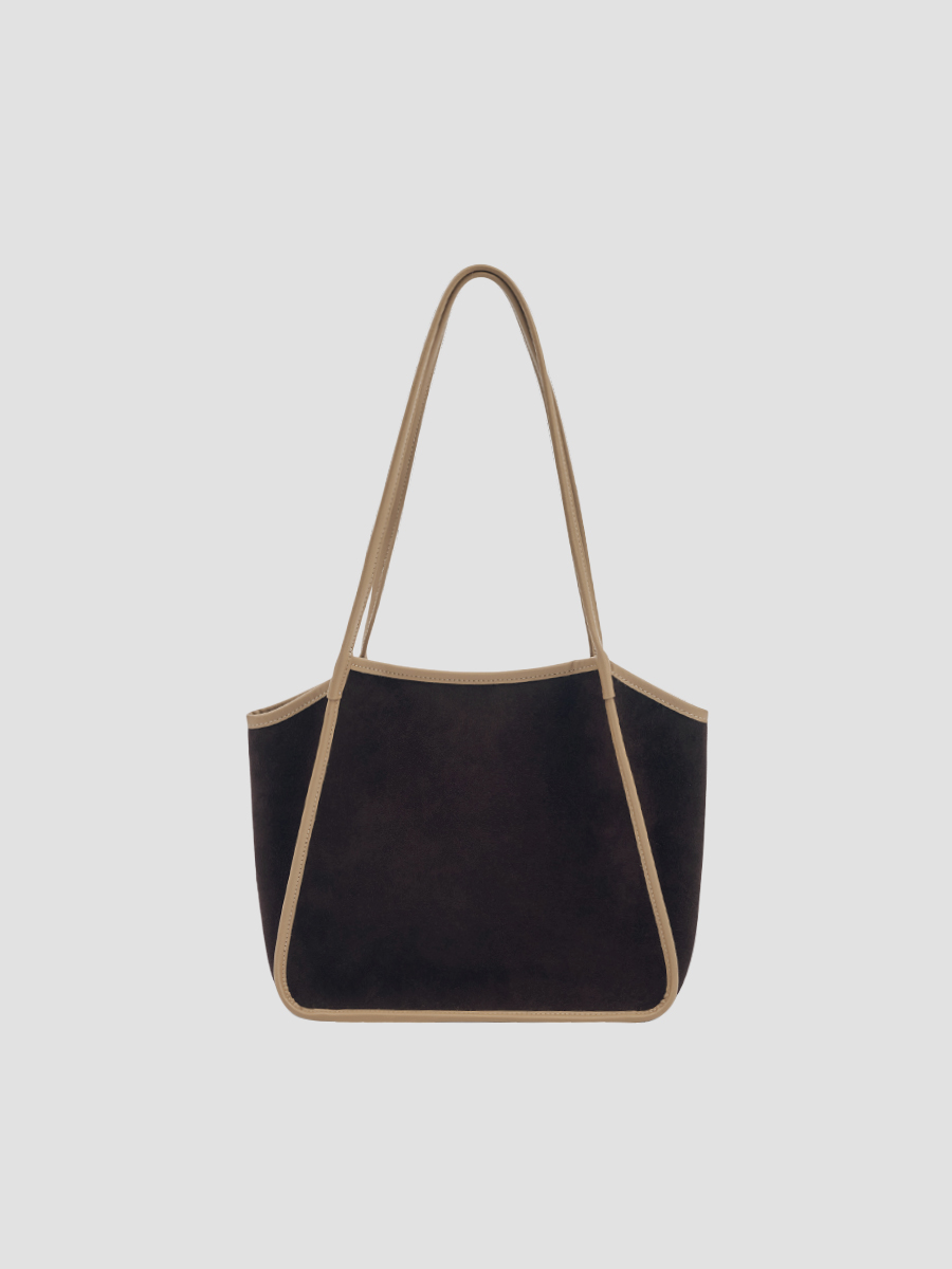 Rita 麂皮編織托特包 以簡約大方的桶型廓型為基礎,包身選用手感柔韌的磨砂麂皮,散發溫潤低調的質感氣息。