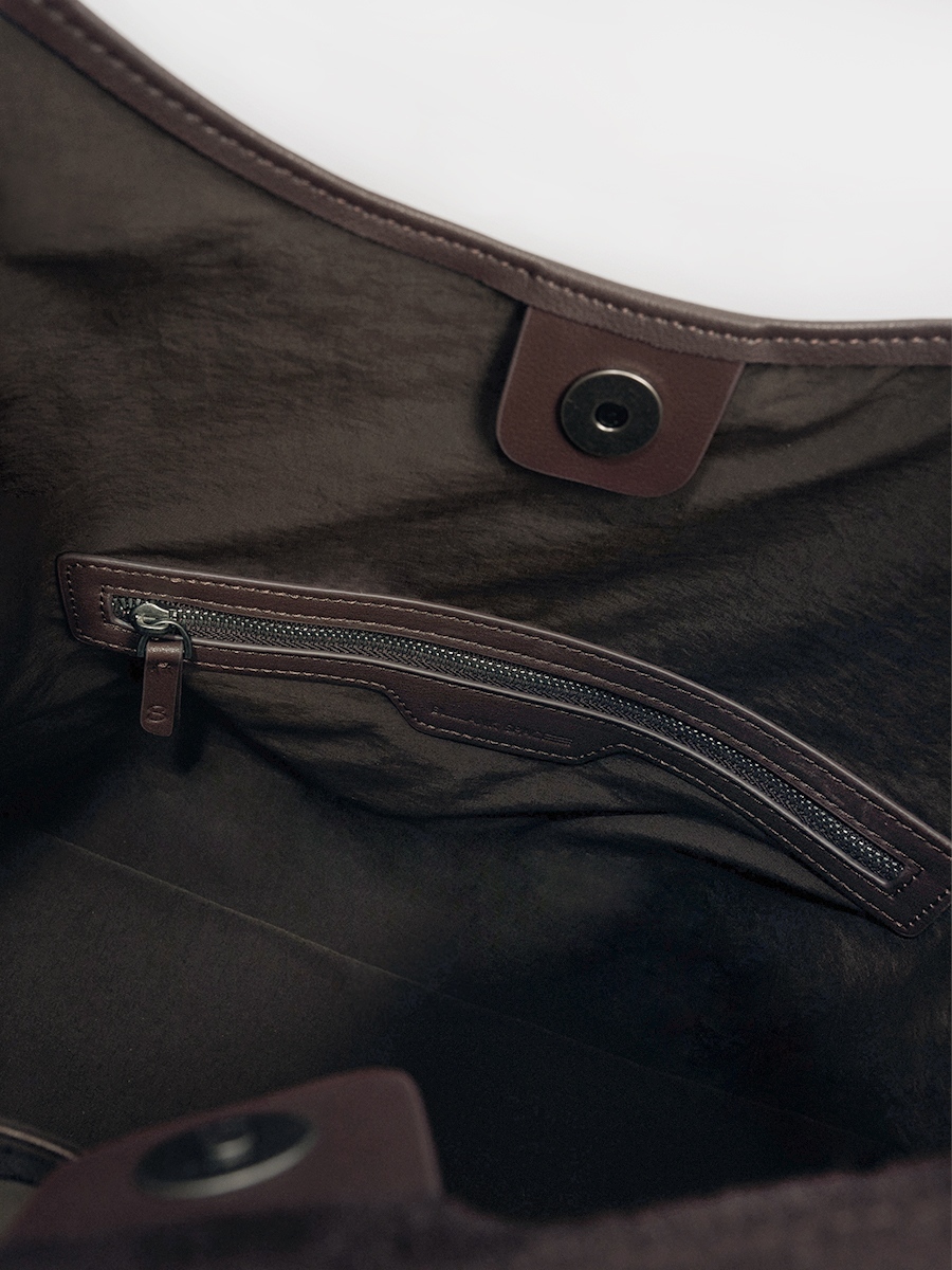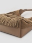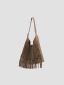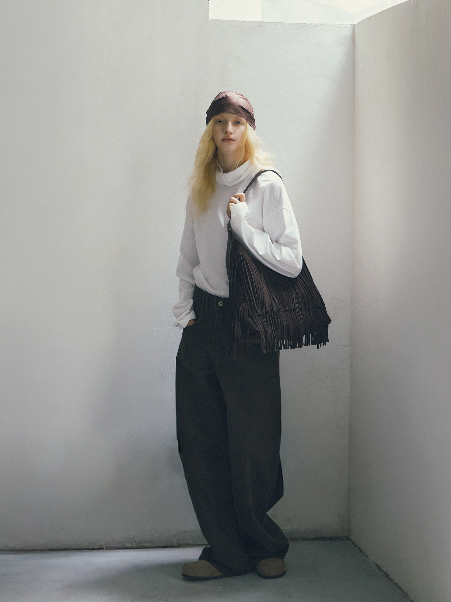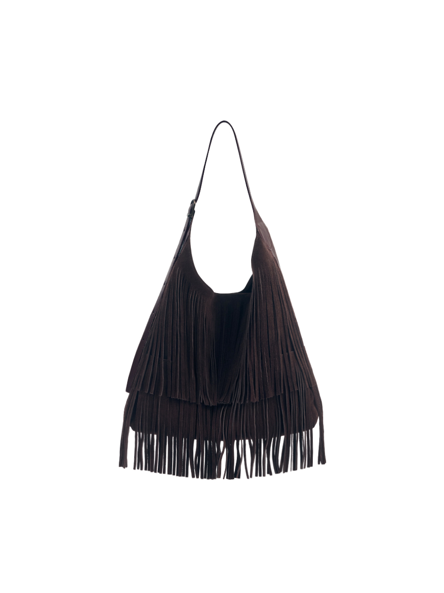 Sue 真皮流蘇托特包 以簡潔大廓形為基礎,勾勒俐落結構線條,結合雙材質雙面設計,一包即可呈現兩種風格,靈活切換,滿足多樣化的日常需求。正面選用磨砂麂皮,搭配大面積流蘇細節,隨步伐搖曳,增添層次與律動感。反面則以手感柔韌細膩的超纖皮革呈現俐落大方的輪廓,無論正式場合或休閒穿搭都能輕鬆駕馭。揹帶採用寬至窄的漸變線條設計,展現俐落感並提升高級氛圍;大容量空間兼具舒適與實用性。