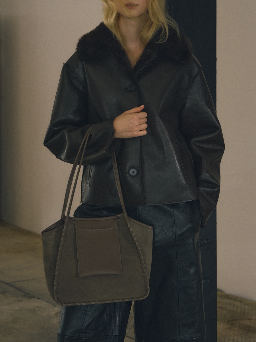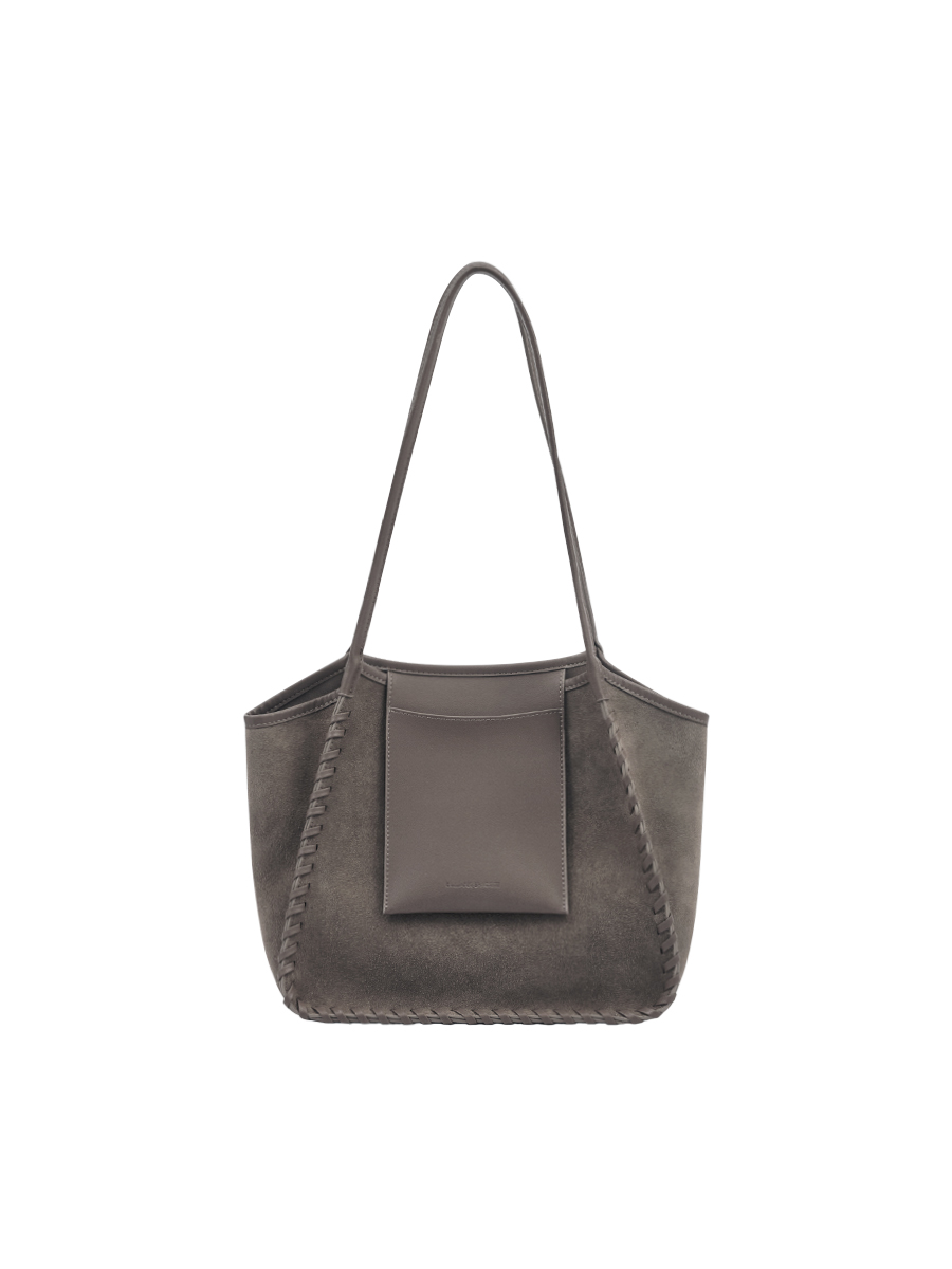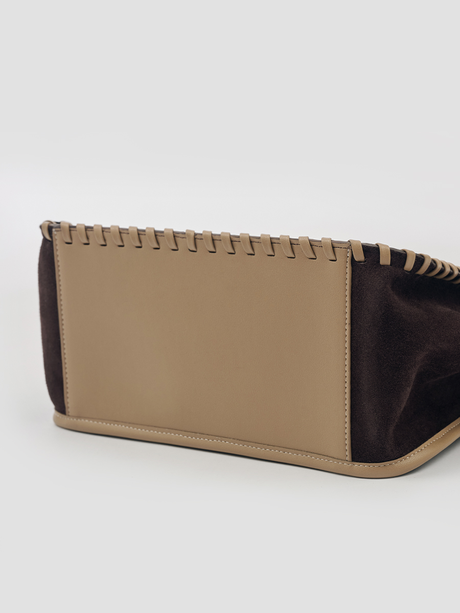 Rita 麂皮編織托特包 以簡約大方的桶型廓型為基礎,包身選用手感柔韌的磨砂麂皮,散發溫潤低調的質感氣息。兩側與底部加入編織細節,凸顯手工質感與層次美感,為整體造型增添設計亮點。搭配雙提把設計,兼顧舒適性與實用性,輕鬆融入日常多種場合。隨包附有抽繩內袋小包,既能增添收納便利,也可單獨使用,提升靈活度與多樣性。整體設計在質感與功能間取得平衡,展現率性卻不失精緻的氛圍。