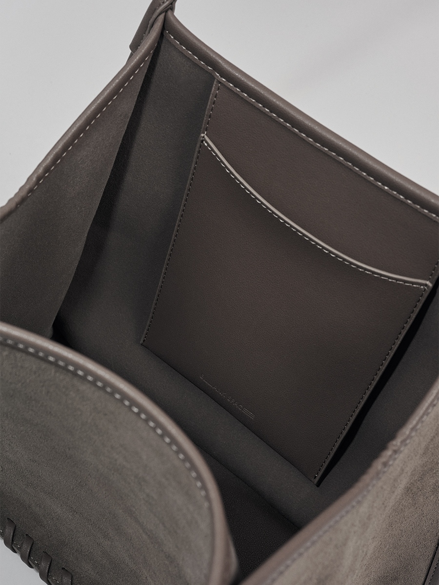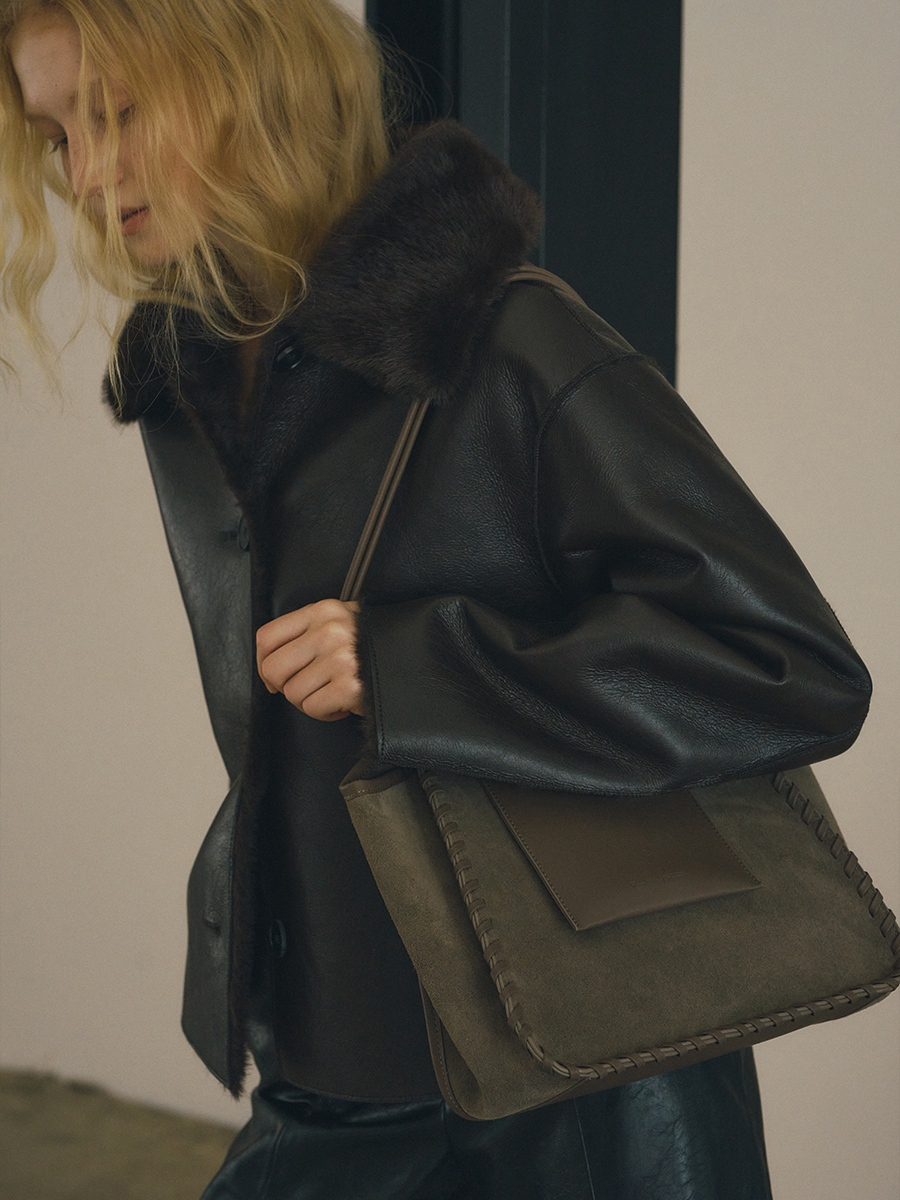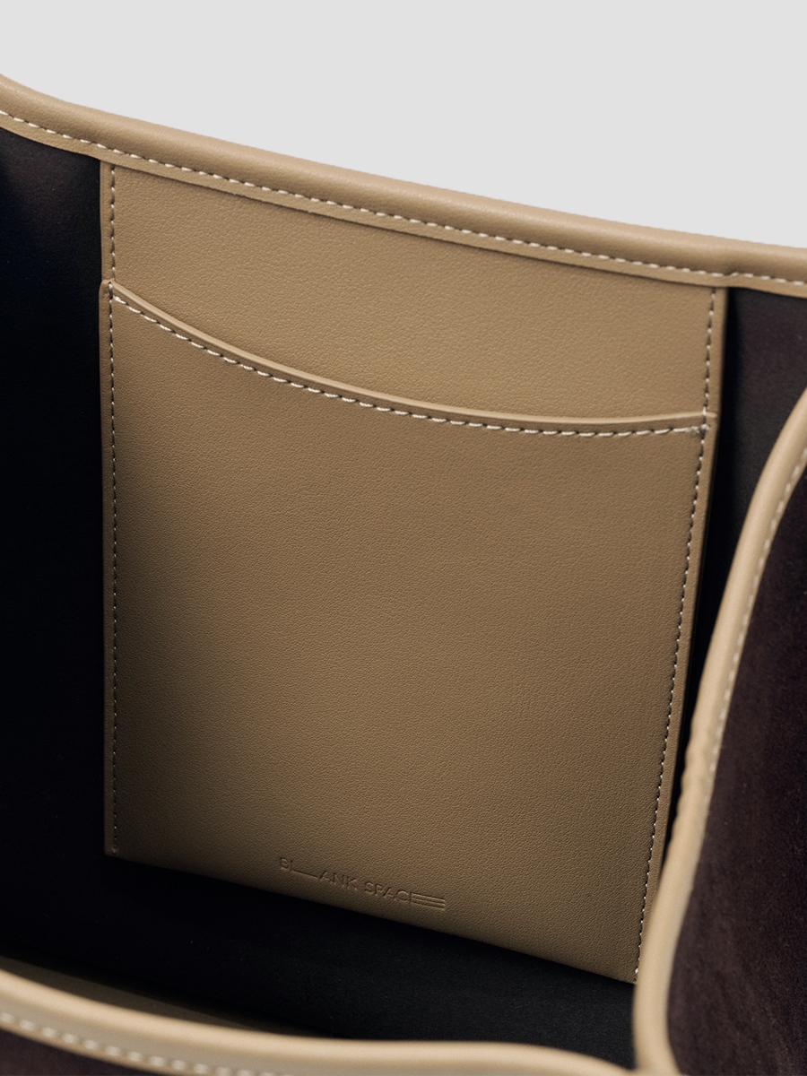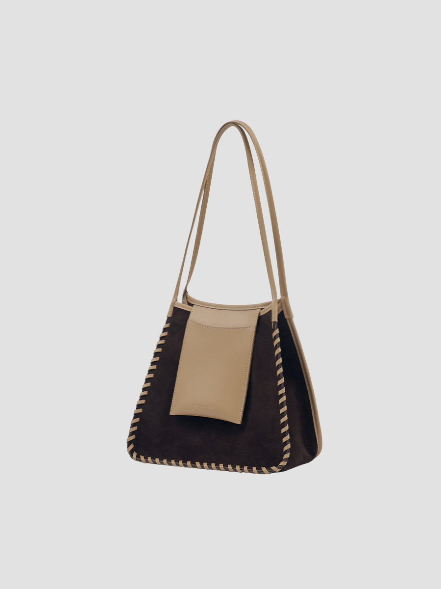 Rita 麂皮編織托特包 以簡約大方的桶型廓型為基礎,包身選用手感柔韌的磨砂麂皮,散發溫潤低調的質感氣息。兩側與底部加入編織細節,凸顯手工質感與層次美感,為整體造型增添設計亮點。搭配雙提把設計,兼顧舒適性與實用性,輕鬆融入日常多種場合。隨包附有抽繩內袋小包,既能增添收納便利,也可單獨使用,提升靈活度與多樣性。整體設計在質感與功能間取得平衡,展現率性卻不失精緻的氛圍。